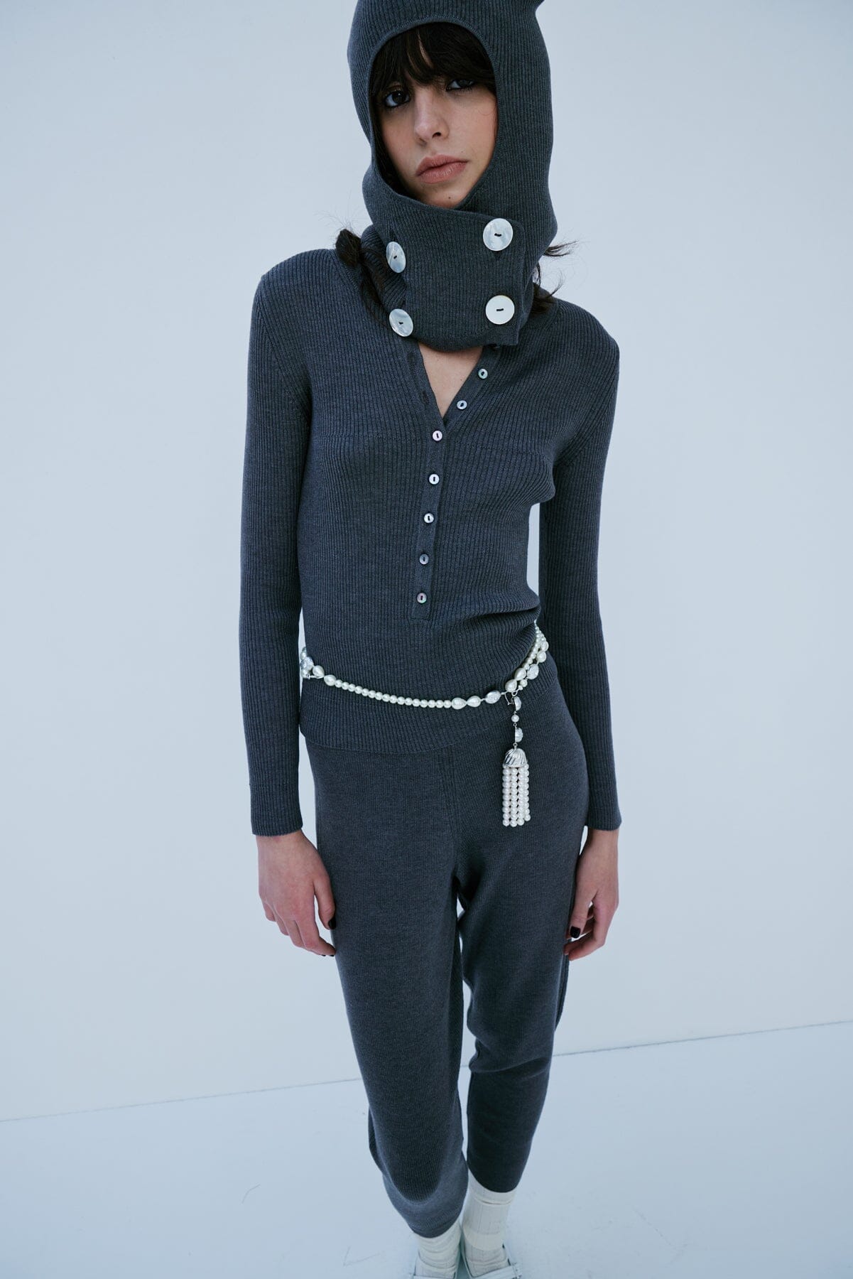 The Insider knit top is a close fitting soft & lightweight wool piece. This classic knit has a rounded v neckline, capped sleeves and a delicately ribbed body with buttons. Model wears size S. Height: 178cm (5' 10'') | Bust: 78cm (30½'') | Waist: 59cm (23'') | Hips: 87cm (34½'').